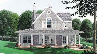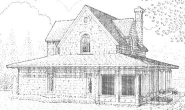 Inspired by the late-19th-century summer cottages along the East Coast, this versatile design is suitable as a primary residence or as a cozy weekend retreat. The floor plan is practically sized and is expanded by a deep veranda and a screened porch, which serve as additional entertaining areas. At the entry, a leaded-glass door opens to a dramatic two-story foyer and turned staircase. A view into the living area reveals a warm woodstove and plenty of space for unwinding after work or a long day of fishing. A dining area is nestled between two sets of sliding French doors. The kitchen's central location and convenient serving bar to the living area make it simple yet functional. Enticing double doors gain access to the master bedroom on the main floor. Enjoy stepping out to the screened porch or into your private bath, with its handy pocket door to the utility room. Two more bedrooms share another bath on the upper floor. The blueprints include plans for a detached two-car garage.